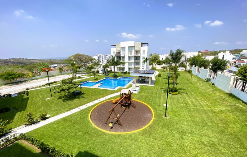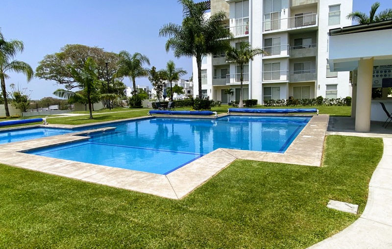 Bonita departamento con tres recamaras en conjunto de 3 torres con áreas verdes, alberca y palapa